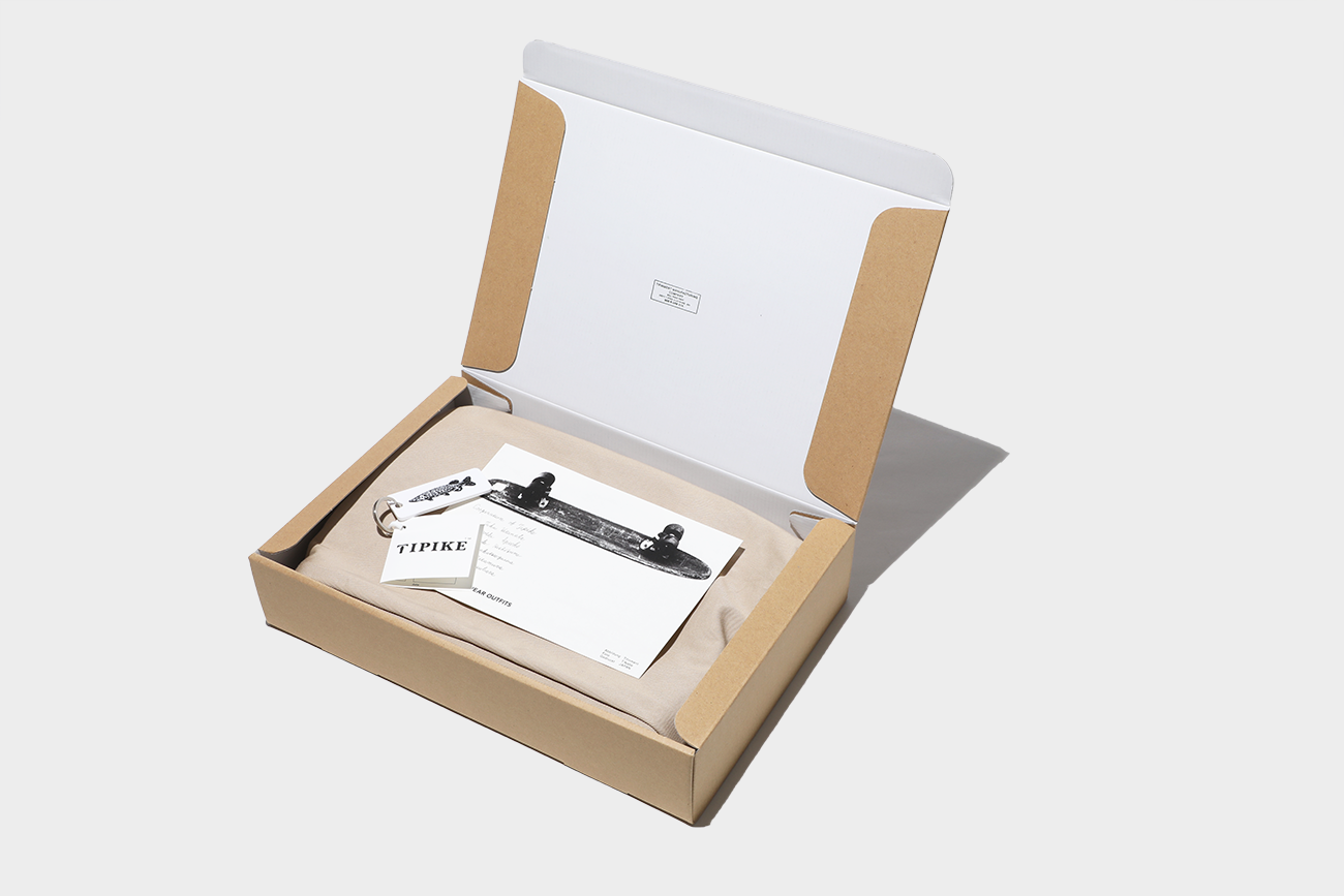 TIPIKE(ティパイク)のブランド名にもなっているPIKE(パイク)のイラストが彫刻されたキーホルダーとオリジナルポストカードも入っています。
